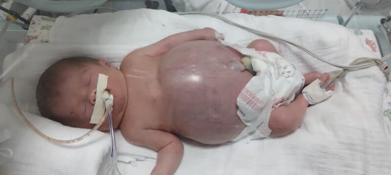 Quando completou 30 semanas e 3 dias fui na emergência novamente porque a dor tava horrível e minha barriga enorme, parecia que já estava de 40 semanas, fiz a ultrassom e contei pro médico que estava de plantão tudo que eu tava sentindo e que o meu médico tinha dito que era pra eu ir na emergência e fazer uma ultrassom na vesícula porque eu poderia estar com pedras, mas não deu nada. Meu líquido havia aumentado e meu bebê precisaria de uma cirurgia assim que nascesse, fiquei internada desde aquele momento. Quando completei 31 semanas de gestação, fiz uma cesária de emergência e corríamos risco de vida. Ele nasceu sendo entubado em estado muito grave, no dia 19/06/2024, e fez uma cirurgia no mesmo dia que nasceu. Estava com um cisto no mesentério do intestino, no sistema linfático e foi retirado, mas depois de 13 dias teve que refazer a cirurgia pois a barriga dele havia crescido novamente. Quando o cirurgião o abriu novamente ele estava com 40% do intestino delgado podre dentro dele, deu embolia e foi retirado esse pedaço do intestino. Meu bebê correu riscos, pegou 2 infecções hospitalares, teve hemorragia pulmonar e outras complicações. Ficou 58 dias na UTI e hoje pela honra e glória de Deus meu bebê está em casa ainda se recuperando mas passa bem. Hoje o menino dos meus sonhos está aqui comigo, meu Oliver Vinícius, meu milagre de Deus!