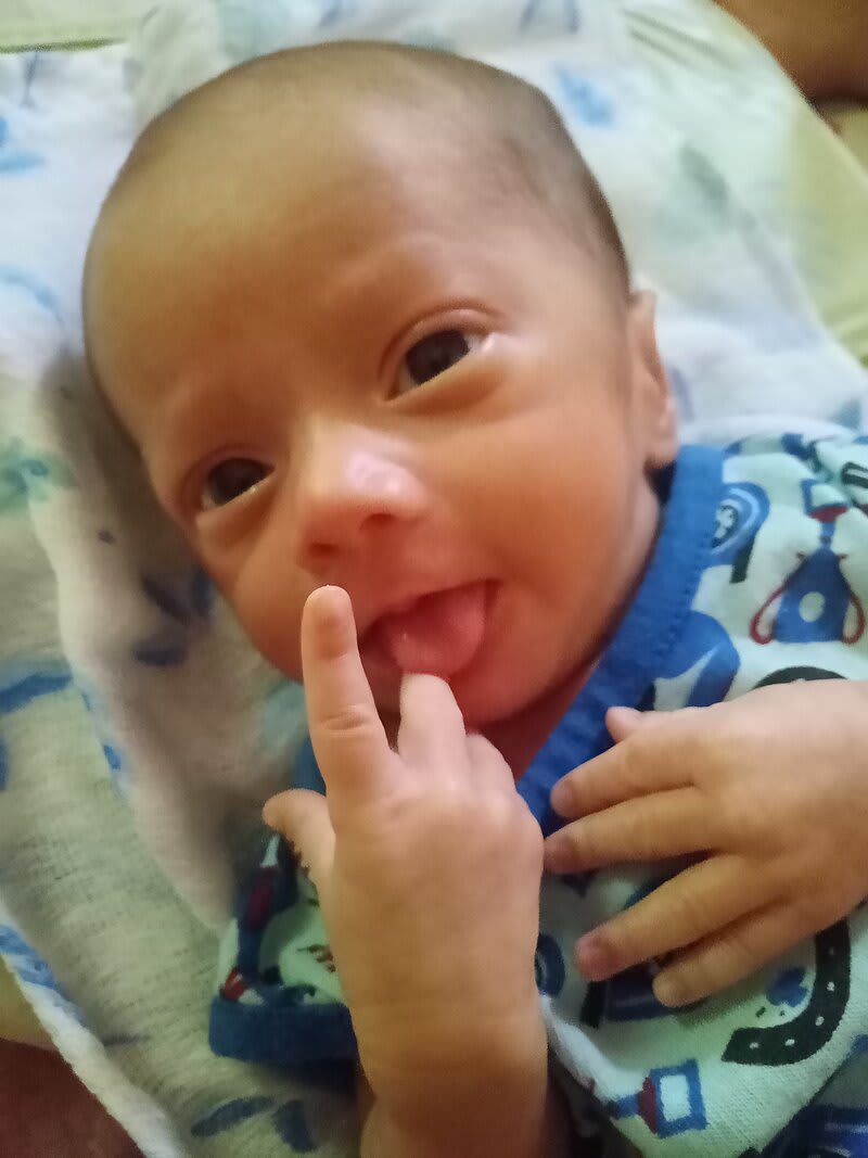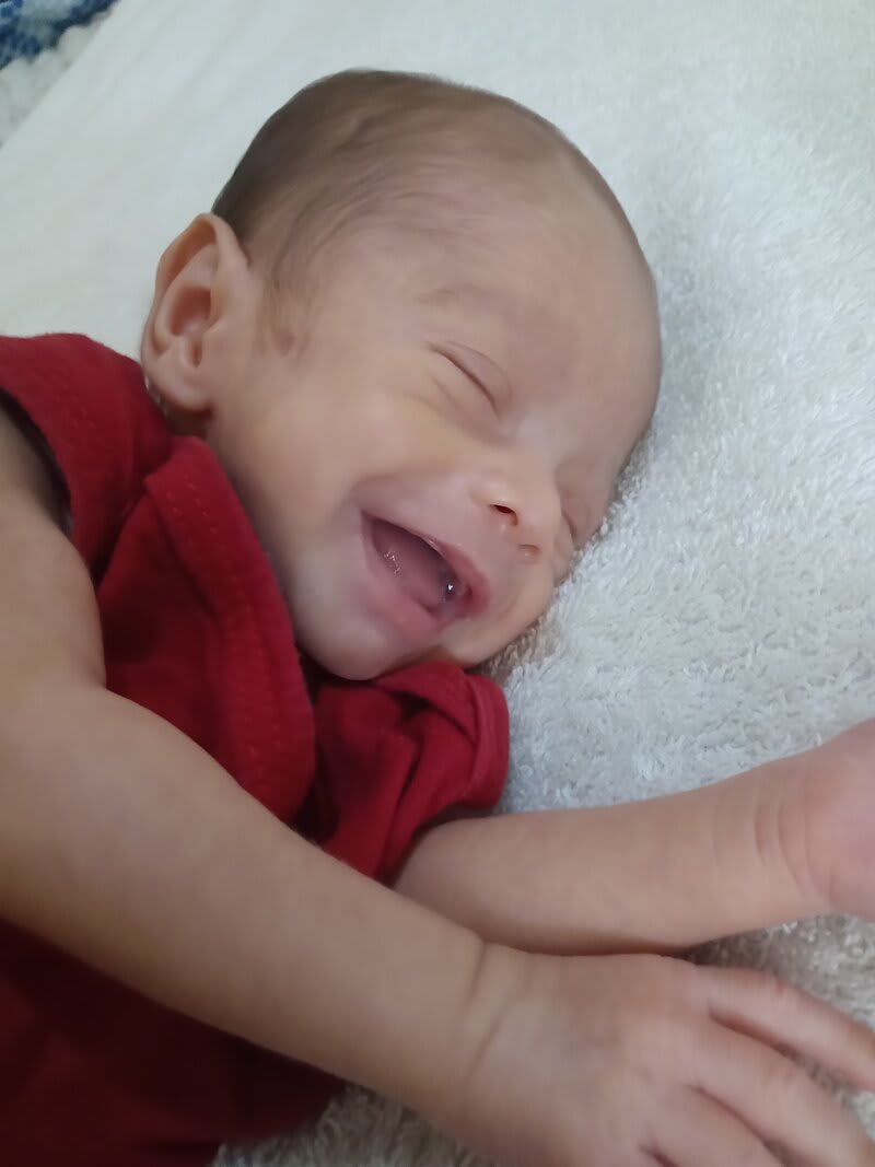 Foram 27 dias de UTI+UCINCO dias atormentantes, ele teve muita dificuldade para aprender a mamar então era um tira e bota de sonda toda semana, e cada semana que se passava eu chorava e chorava pedindo a Deus que trouxesse meu bem mais precioso para casa. Faltando 3 dias para ele completar um mês recebemos nossa esperada alta. Hoje ele está com 1 mês e 5 dias, bem saudável graças a Deus!