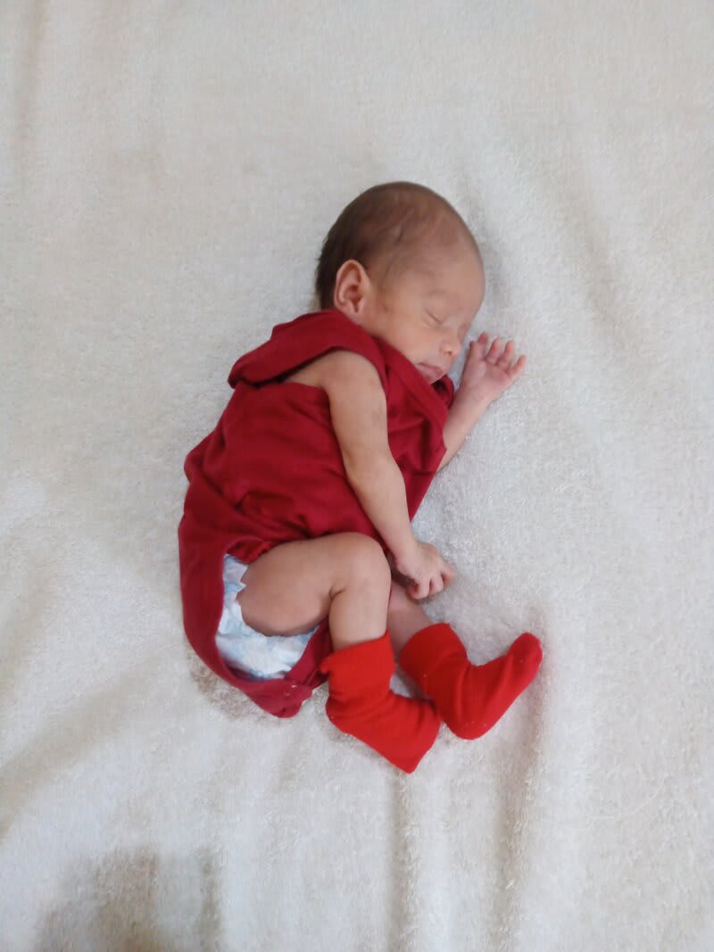 Fomos para o hospital e minha pressão estava 18/9 nas alturas, logo me internaram e me deram a primeira dose de corticóide, me colocaram em observação a noite toda, tomando sulfato de magnésio, porém nada fazia a pressão baixar, tive eclâmpsia, que logo evoluiu para síndrome de hellp. No dia 22 às 5h fizeram uma cesária de emergência e meu milagre veio ao mundo com 31+5 pesando apenas 1.500kg e 41cm, precisei ficar internada mais 5 dias para tentar normalizar a pressão, e logo começou o tormento.