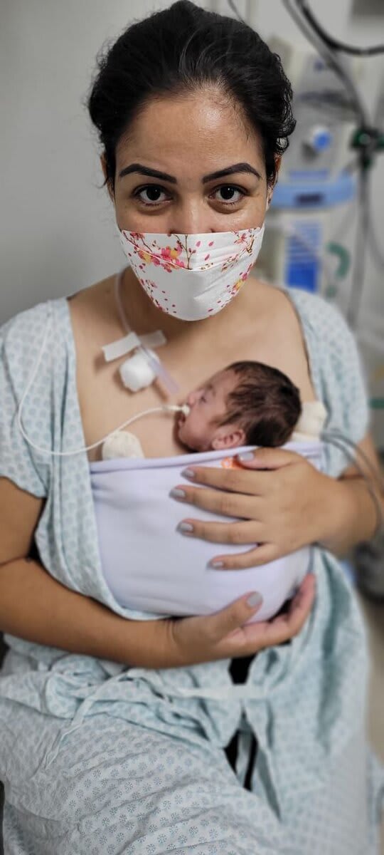 No dia que completei 25 semanas fui à maternidade, mais uma de tantas vezes, pois percebi coágulos no sangramento (que era comum para mim na gestação dele), chegando lá um plantonista muito atencioso espantou-se em saber que eu não tinha ficado internada até então, pois pra ele nada justificava me mandarem pra casa com aquela hemorragia toda. Foi pedido um cardiotoco e a decisão que mais temia foi tomada, Leôn teria mais chances fora que dentro de mim. Pesando 900 gramas, medindo 32 centímetros, nasceu no dia 07/09/2022 às 16:23 da tarde, num parto amedrontador, cheio de incertezas. Ali meu pequeno travava uma batalha.
