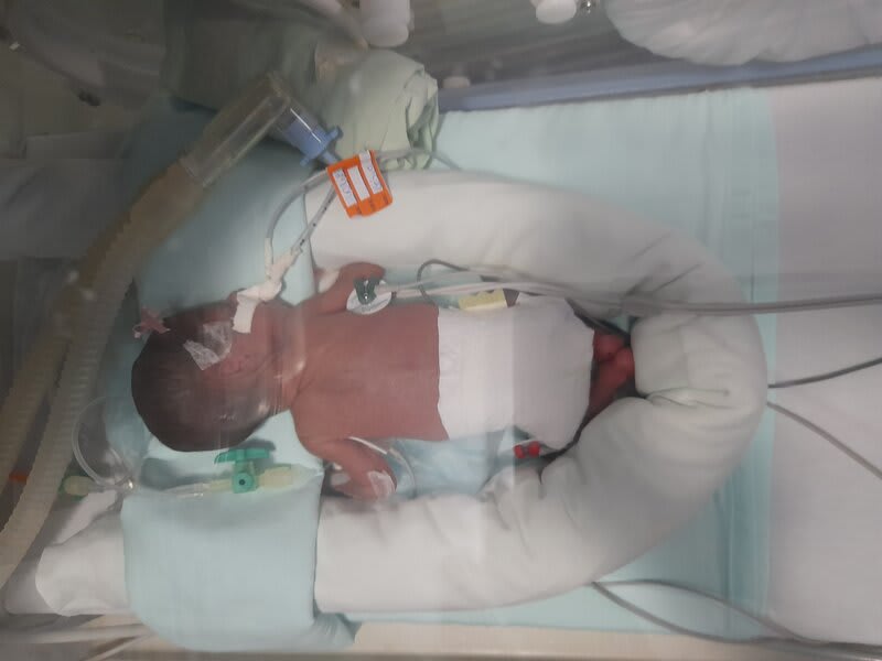 Após uma semana teve complicações da prematuridade, os rins já não estavam querendo funcionar, o pulmão do lado direito tinha mais ar do que o outro.