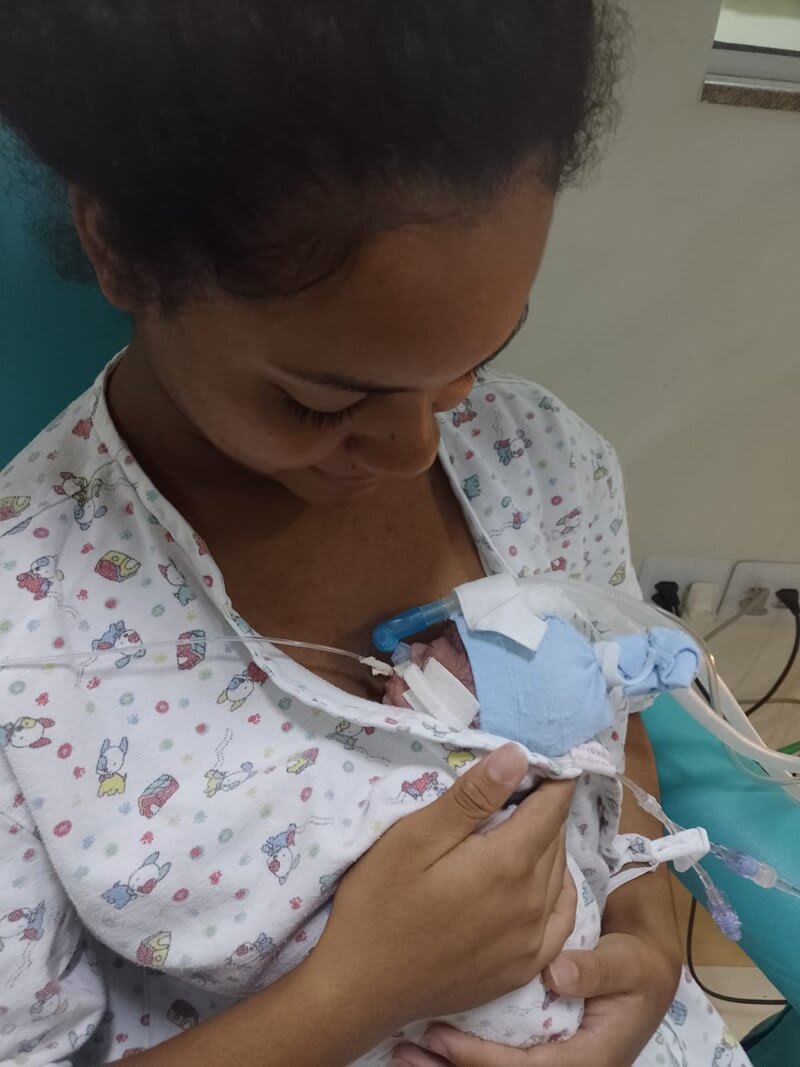 Minha guerreira nasceu de 25 semanas pesando apenas 865 gramas e apenas 32 cm.Ela ficou 13 dias entubada e 10 dias no oxigênio. Foram 76 dias de internação com medo, insegurança. Com fé em Deus, logo ela saiu forte e saudável e hoje está com 2,500kg e 44 cm, 3 meses. Vamos vencendo um dia de cada vez sem desanimar e desistir!
