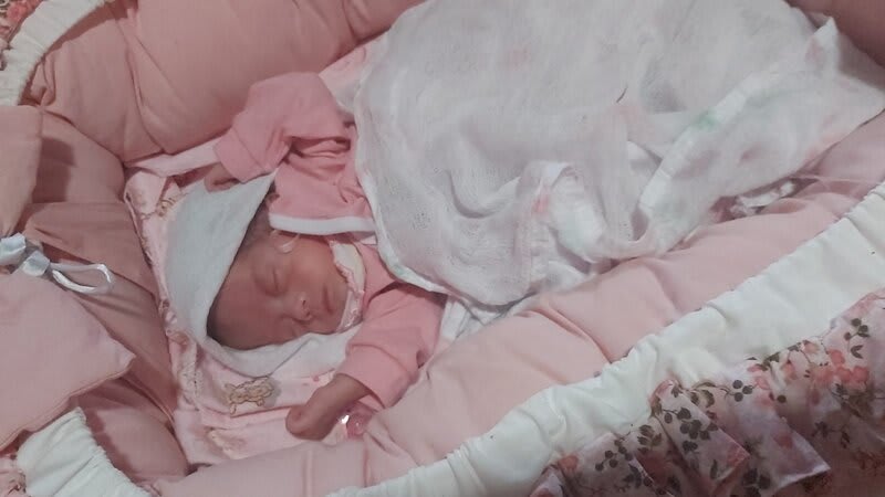 Então me indicaram a maternidade escola aqui em Fortaleza, chegando na porta da emergência comecei a sangrar muito então eles entraram em desespero e fui direto fazer outro toque quando eles disseram que já estava com 9 cm de dilatação. Então eles me encaminharam diretamente para sala de parto humanizado, chegando lá já estava com 10 cm, então só deu tempo de tomar uma injeção para o fortalecimento do pulmão dela. Quando foi por volta das 13:01 a minha Maria Eliza nasceu com 810 gramas e medindo 35 centímetros. Ali começou uma nova jornada, ela foi entubada e tomou a primeira bolsa de sangue devido a anemia por causa da prematuridade.