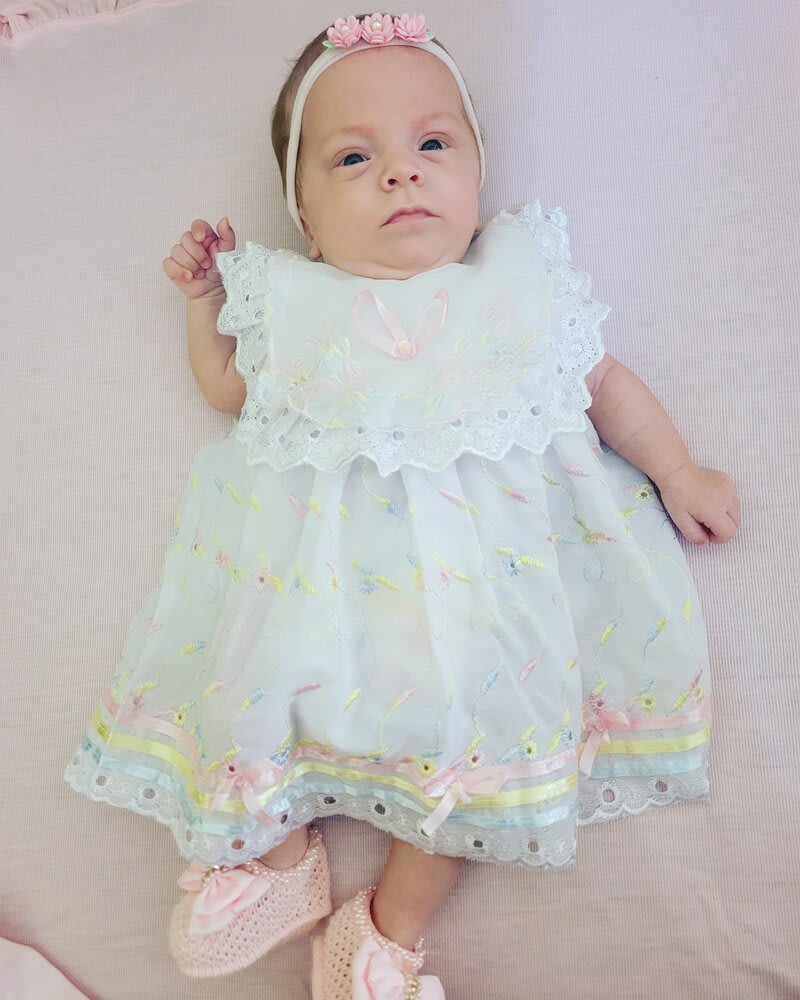 Minha pequena grande guerreira de apenas 27 semanas + 5 dias, pesando 702 gramas, perdeu para 630 gramas... Medindo 33 centímetros (Devido pré-eclâmpsia grave). Foram quase 88 dias de UTI, muitas coisas aconteceram: 2 paradas no dia do nascimento, 3 intubações, 3 transfusões de sangue e uma infecção. Foram 15 dias de antibiótico e algumas apneias e eu precisei ter muita fé pois até os médicos, desenganaram minha filha no dia que ela nasceu, mas a última palavra vem do Senhor Jesus e hoje meu milagre está aqui para contar seu lindo testemunho! Hoje o meu milagre de vida está com 4 meses cronológicos e 1 mês corrigido, para honra e glória do Senhor Jesus, sem nenhuma sequela pois Deus é perfeito e fiel e não faz milagre pela metade. A vida da minha filha, é de Deus. Minha promessa do Senhor, minha Cecília Vitória.