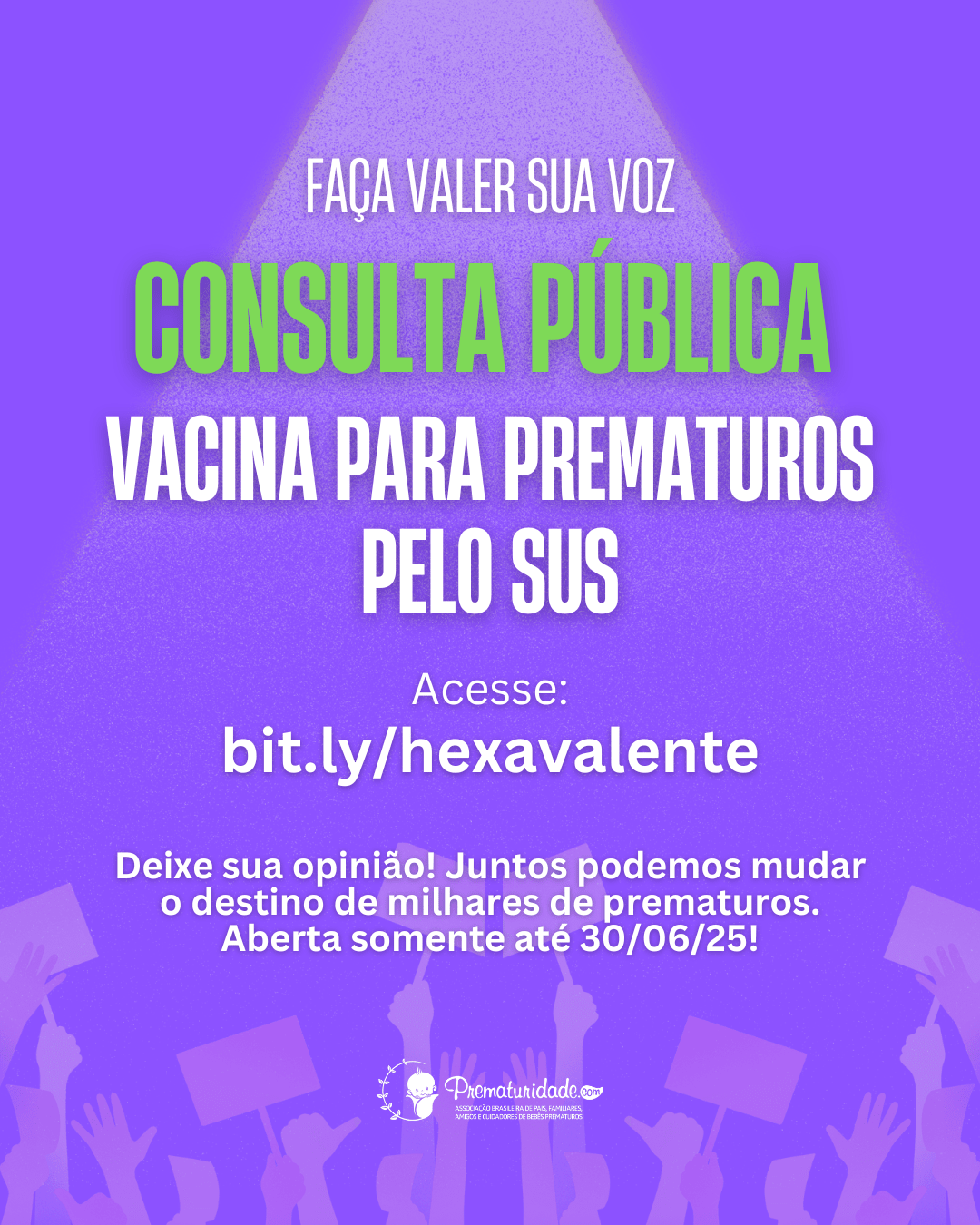Desde 2023, a ONG Prematuridade.com tem atuado fortemente pela ampliação do acesso à vacina hexavalente acelular. Entregamos uma Carta Aberta à então Ministra da Saúde, Nísia Trindade, e lançamos uma petição pública, que já ultrapassou 18 mil assinaturas. Agora, com a consulta pública aberta, temos mais uma chance concreta de fazer nossa voz ser ouvida.