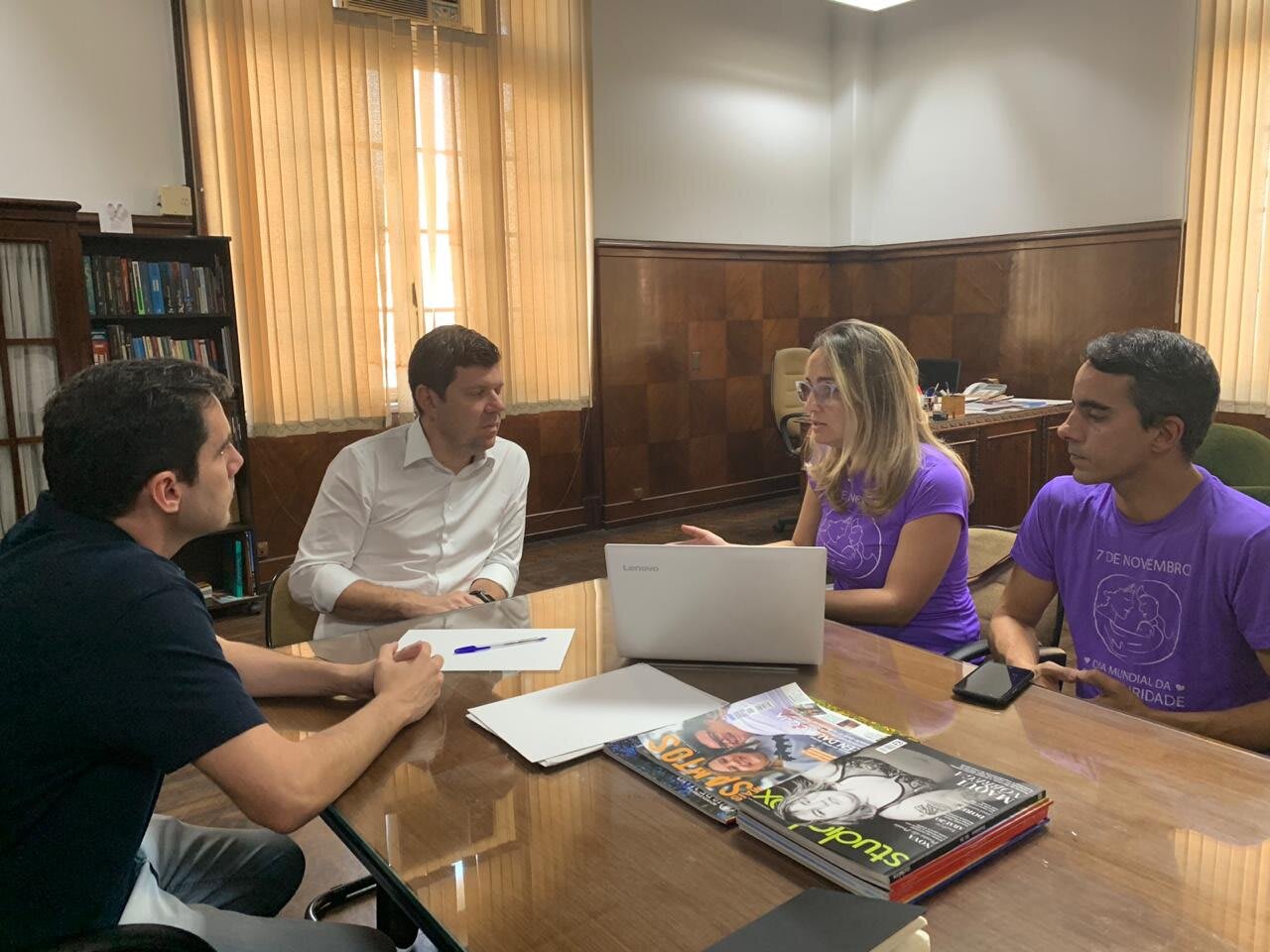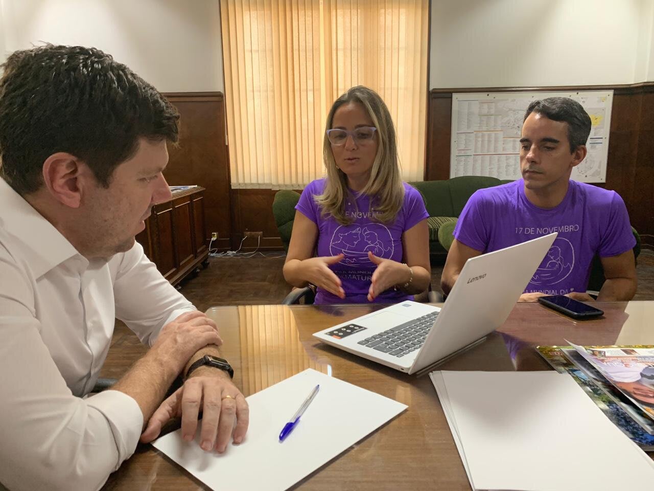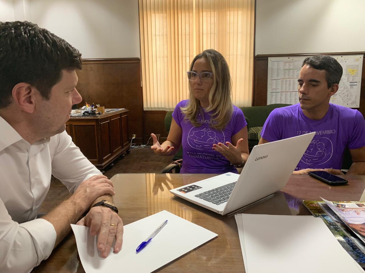 O primeiro compromisso da agenda foi na prefeitura de Santos com o Sr. Secretário de Turismo, Flávio Ramirez Jordão, com ajuda do gabinete da vereadora Audrey Kleys (PP), que apresentou à Câmara dos Vereadores um projeto de lei que institui no dia 17 de novembro o Dia Municipal da Prematuridade em Santos.