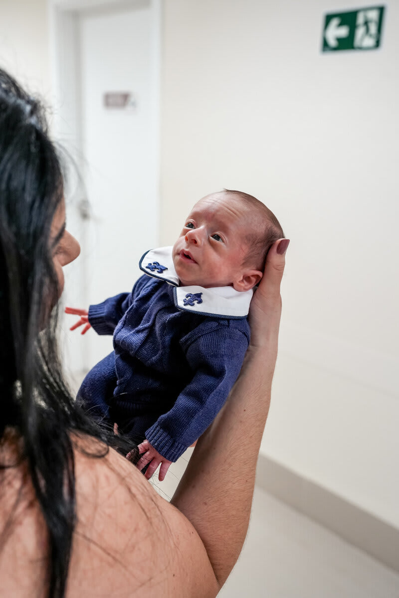 Olá! Esse é o Sr. Oliver, o meu pequeno grande homem, como os pediatras da UTI o chamavam. Tive trombofilia nas duas artérias uterinas, o que resultou em um bebê RCIU, pré-eclâmpsia e também tive diabetes gestacional. No início da gestação sofri uma queda na escada que resultou em um descolamento de embrião. Passei por diversos obstetras até encontrar uma em que confiasse. Oliver nasceu de 34s+1, uma cesárea de urgência, pois centralizou. Pesando 1,4 kg ficou 33 dias na UTI neo apenas para ganho de peso, já que nunca precisou nem de máscara de oxigenação, pois usei corticóide antes do nascimento. Na ultrassom do dia do parto, descobri que meu filho tem uretra hipospádia, mas nasceu fazendo xixi, então não precisou de uma cirurgia. Depois de 3 semanas da alta, descobrimos que o Oliver tinha hérnia nos dois testículos, foram dias de muito choro e dor, não sei como resisti a ver tanto sofrimento até o dia da cirurgia - com 3 meses de vida - foi mais doloroso do que vê-lo na UTI neo, pois já sabíamos que ele ficaria na UTI há 1 mês antes do parto. Na cirurgia ele necessitou ser entubado e ficou menos de 24h em observação na UTI. Meu filho é outro bebê depois da cirurgia! Alegre e super sorridente, conversador. Mas, daqui 1 ano terá que fazer a cirurgia da uretra hipospádia, que será mais complicada e dolorosa, porém, só de ver meu bebê com 5 kg a mais do que nasceu e feliz, me faz amar cada vez mais a ciência e a medicina.