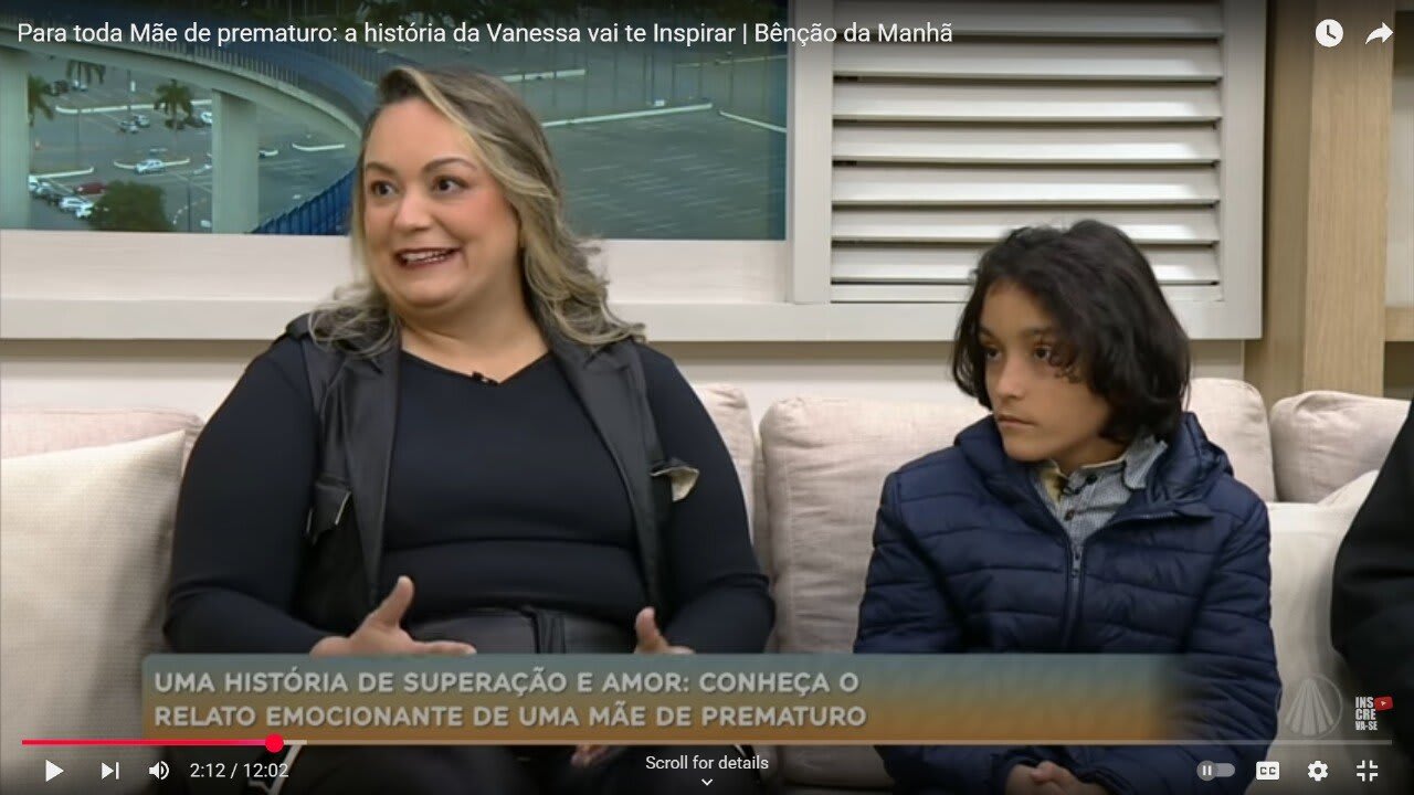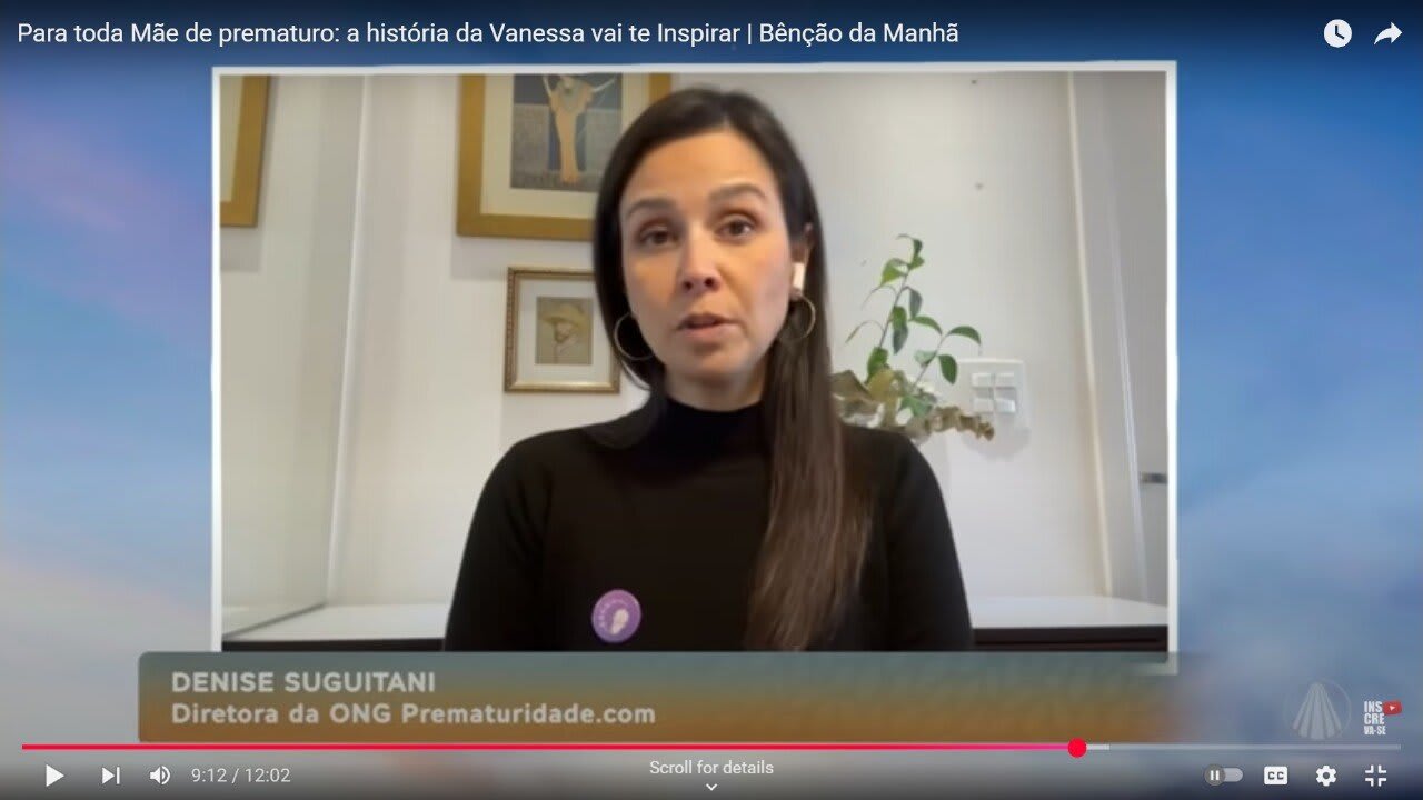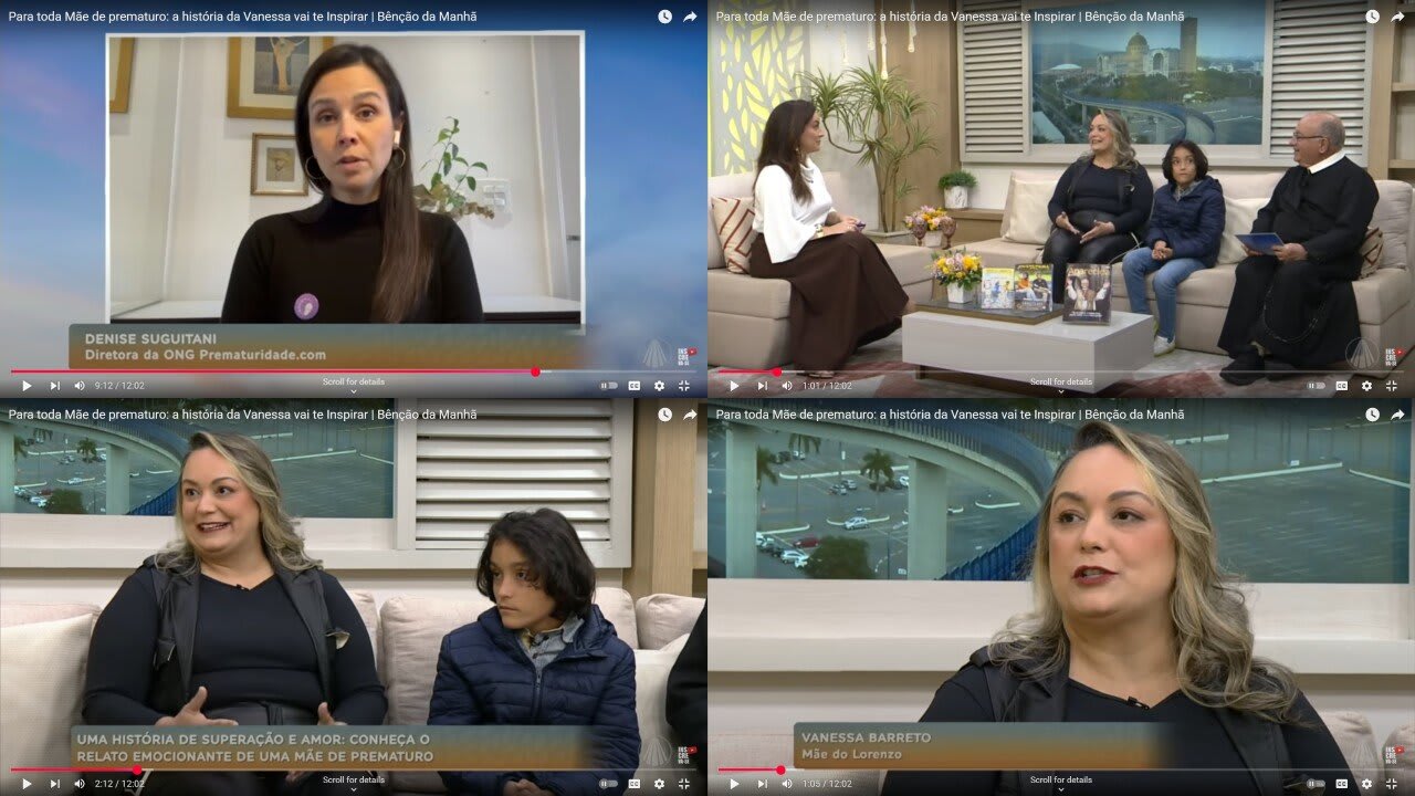No programa Bênção da Manhã, da TV Aparecida, a diretora da ONG Prematuridade.com, Denise Suguitani, alertou sobre os riscos e cuidados da prematuridade. O programa também contou com a participação da voluntária da ONG, Vanessa Freire, que compartilhou seu relato inspirador como mãe do prematuro, Lorenzo.