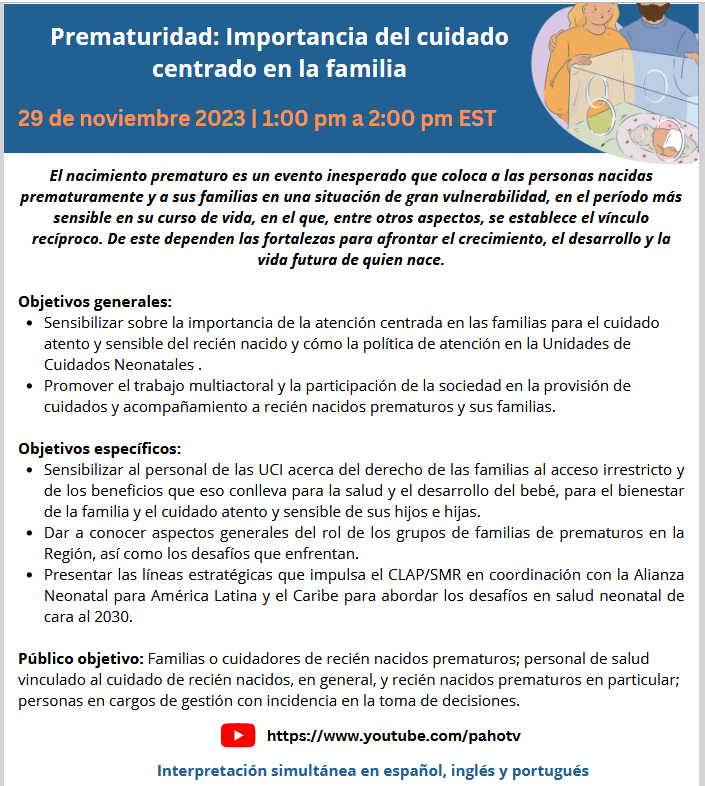 Nesse contexto, e por sugestão da ONG Prematuridade.com ao grupo gestor da Organização Panamericana de Saúde (OPS), no dia 29 de novembro de 2023, aconteceu um webinar internacional com os seguintes objetivos: