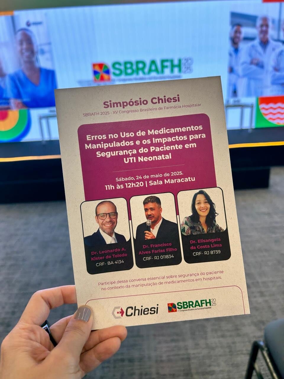 A ONG Prematuridade.com teve o privilégio de participar desse importante congresso, fortalecendo sua atuação na pauta da segurança do paciente em UTIs neonatais. A convite da Chiesi, a ONG esteve presente no simpósio satélite “Erros no uso de medicamentos manipulados e os impactos para a segurança do paciente em UTI neonatal”, realizado no sábado, 24 de maio, na Sala Maracatu.