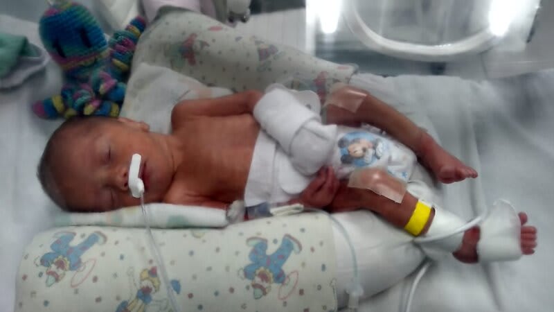 Tive pré-eclâmpsia com apenas 25 anos e também diabete gestacional e ele já estava em sofrimento, com centralização fetal.Para honra e glória de Deus, nasceu respirando sem oxigênio, porém ficou aproximadamente 2 meses na uti para ganhar peso.Teve icterícia, anemia, no começo não aceitava dieta porque vomitava muito, após dois dias de alta em casa, teve que voltar para uti novamente pois no banho notamos que tinha algo errado no saco escrotal, e mais uma vez esse guerreiro nos surpreende passando por uma cirurgia de hérnia inguinal com menos de 2 meses.