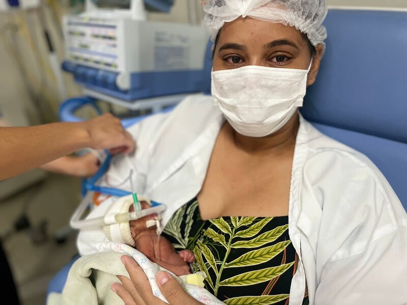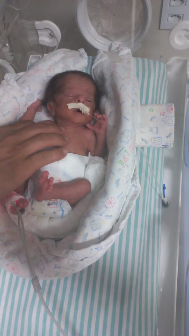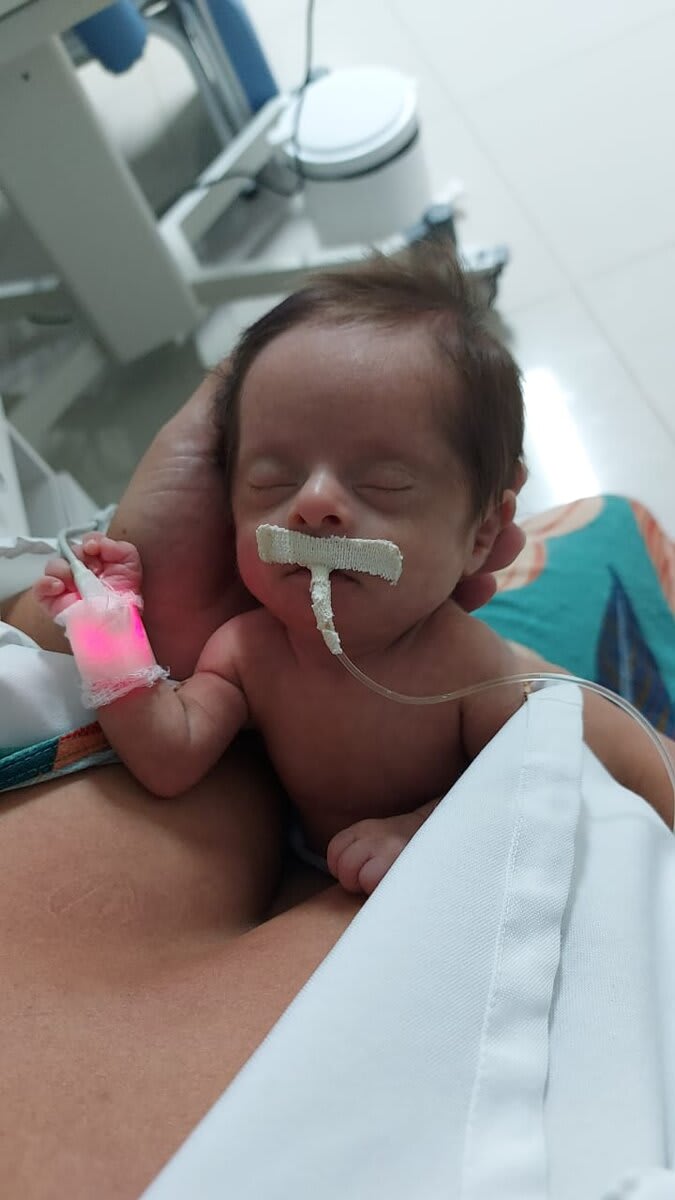 Me chamo Rafaela e sou mãe do pequeno Francisco um prematurinho com T21, ele nasceu de 31 semana mais só teve desenvolvimento até 25 semana , ele teve um nascimento de urgência pois tava tendo sofrimento fetal, não tava recebendo nutrientes e nem oxigênio para sobreviver mais tempo no meu ventre, ele nasceu com 790 gramas e 30 cm, permaneceu no CTI neonatal por 90 dias, ele é portador de síndrome de down,cardiopatia e leva uma broncodisplasia grave, após permanecer em casa 3 meses ele foi internado e diagnosticado com uma pneumonia grave que resultou em um derrame pericárdio causado uma pericardite no coração, teve uma parada cardíaca, foi intubado e precisou ser transferido para uma outra cidade a mais de 1000 km de distância em um hospital que tinha uma UTI cardio para fazer uma cirurgia de urgência mais graças a Deus não precisou fazer. Foi desentubado e com 4 dias sem a intubação tornou ele teve crise de broncoespasmo grave e foi internado novamente, permaneceu intubado por 32 dias teve várias complicações, entre elas falta de oxigênio no cérebro. Tivemos alta após mais 3 meses de internação em uma UTI, hoje estamos em casa com a graça de Deus seguindo com os tratamentos, sendo alimentado com sonda enteral. Hoje ele está com 10 meses e com o peso de 5.555kg.