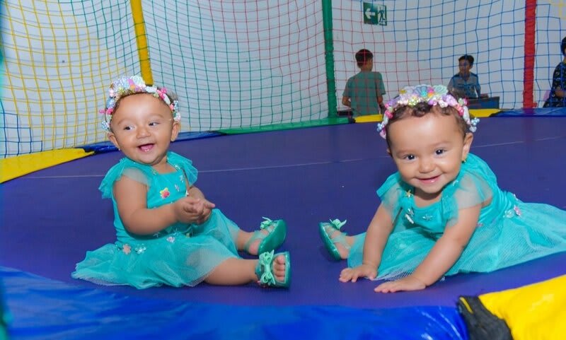 Minha gestação foi gemelar de alto risco devido hipertensão arterial, precisei ficar internada por um período de 30 dias para conseguir segurar a gestação por mais tempo, pois umas das meninas estava com restrição de peso, mais com 32 semanas com um quadro de pré-eclâmpsia grave elas vieram ao mundo, Aurora com 1.200kg e 35cm e Vallentina com 1.720kg e 38cm, não precisaram ser entubadas, ficaram na UTI neonatal por 30 dias. Foram dias difíceis, foram muitos desafios para uma mãe de primeira viagem, mas graças a Deus hoje são saudáveis!