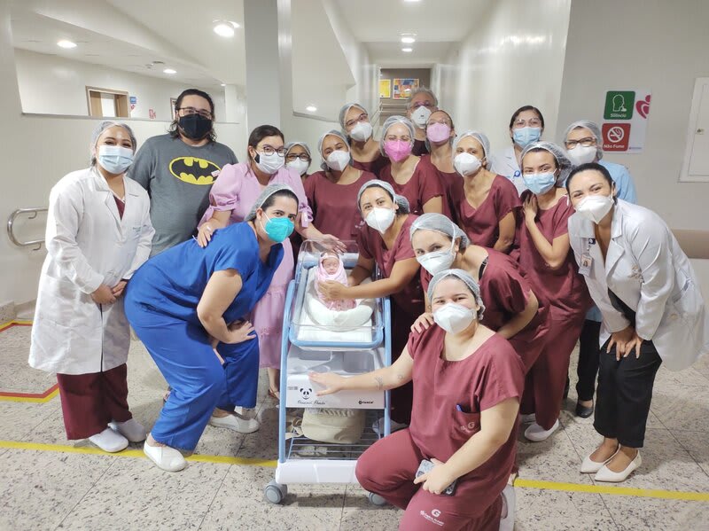 Minha filha Sophia Sousa Matos, nasceu no dia 06/11/2021 com 27 semanas e 4 dias de uma cesária de emergência, eu tive pré eclampsia. Ela nasceu pesando 800 gramas e medindo 25 cm, teve várias intercorrências, era muito grave nas primeiras semanas e só Deus podia salvar, o médico dizia. Ficou em dieta zero, precisou de transfusão de sangue por conta da anemia grave, tinha problema dos olhos por ser muito prematura e usar o oxigênio. Depois começou a melhorar e começou a tomar 1 ml de leite e começou a subir todos os dias uns ml de leite e peso também. Ficou na intubação, usou também o spap, ficou no cateter e por fim no ar circulante. A Sophia ficou internada 74 dias. E finalmente dia 18 janeiro de 2022 ela teve alta. A felicidade foi enorme de sair com ela da maternidade, meu milagre de Deus. Com 20 dias em casa ela se engasgou no peito com leite e ficou roxa, aí fiz a manobra de desengasgo e ela voltou. Agora está bem demais, já está com 1 ano e 8 meses. Anda, fala, come tudo. Amém!