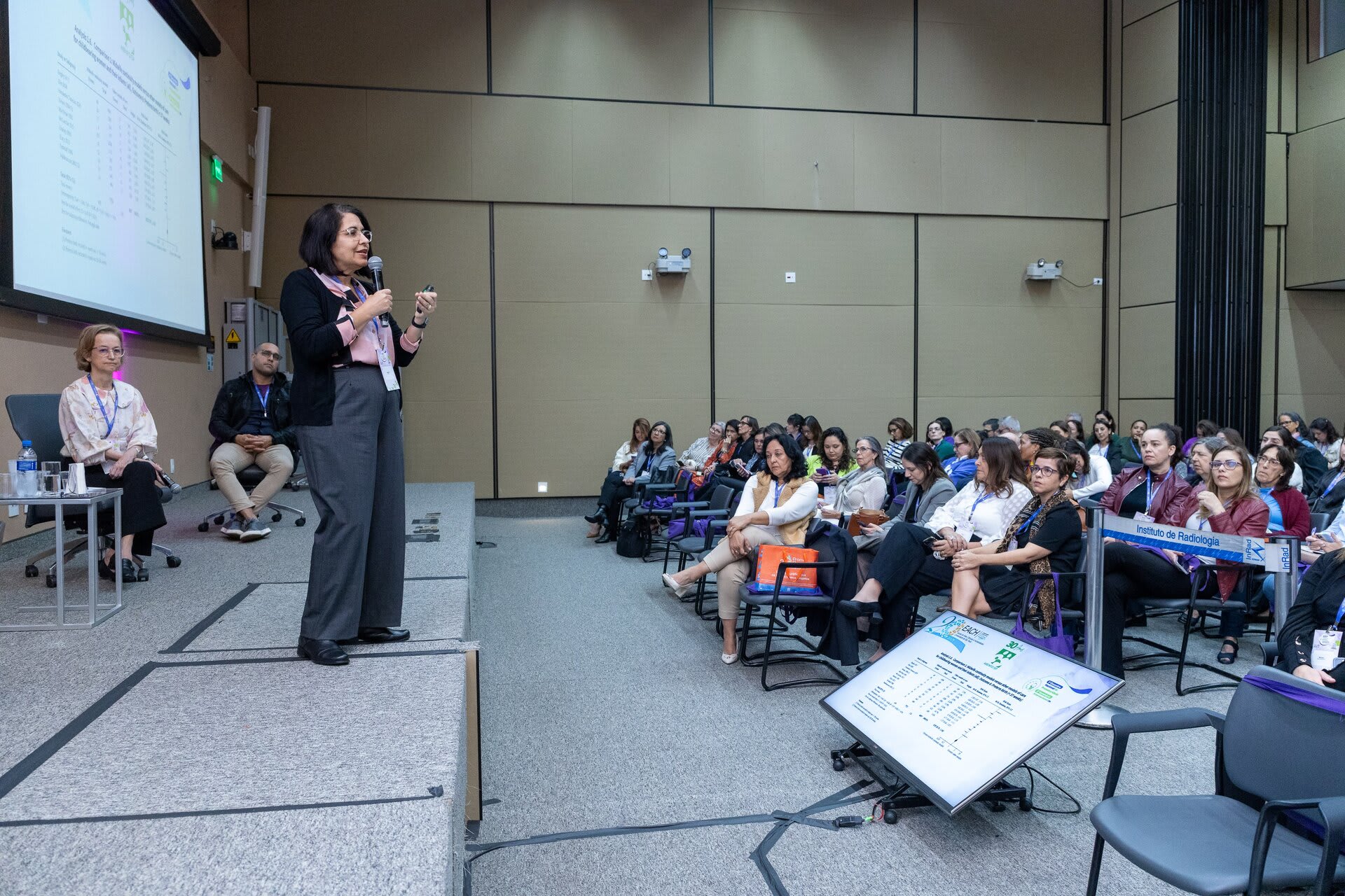 O auditório do Instituto de Radiologia do Hospital de Clínicas de São Paulo (Inrad - HCFMUSP) foi cuidadosamente preparado para receber palestras presenciais e garantir a fluidez na transmissão online, respeitando o cronograma previsto. O bom funcionamento técnico e o cumprimento dos horários reforçaram a excelência da organização do encontro.