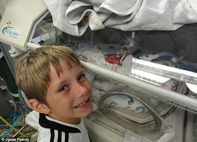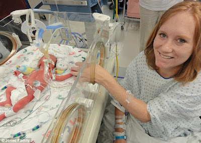 A mãe contou que estava nervosa entre a 23a e 26a de gestação por saber do alto risco de ter os bebês naquele período. Mas, na 28a semana, se tranquilizou porque sabia que a chance de os bebês sobreviverem era maior. Carrie e o marido, Gavin Jones, 35, agora têm um blog para contar a história dos filhos que acabaram de nascer.