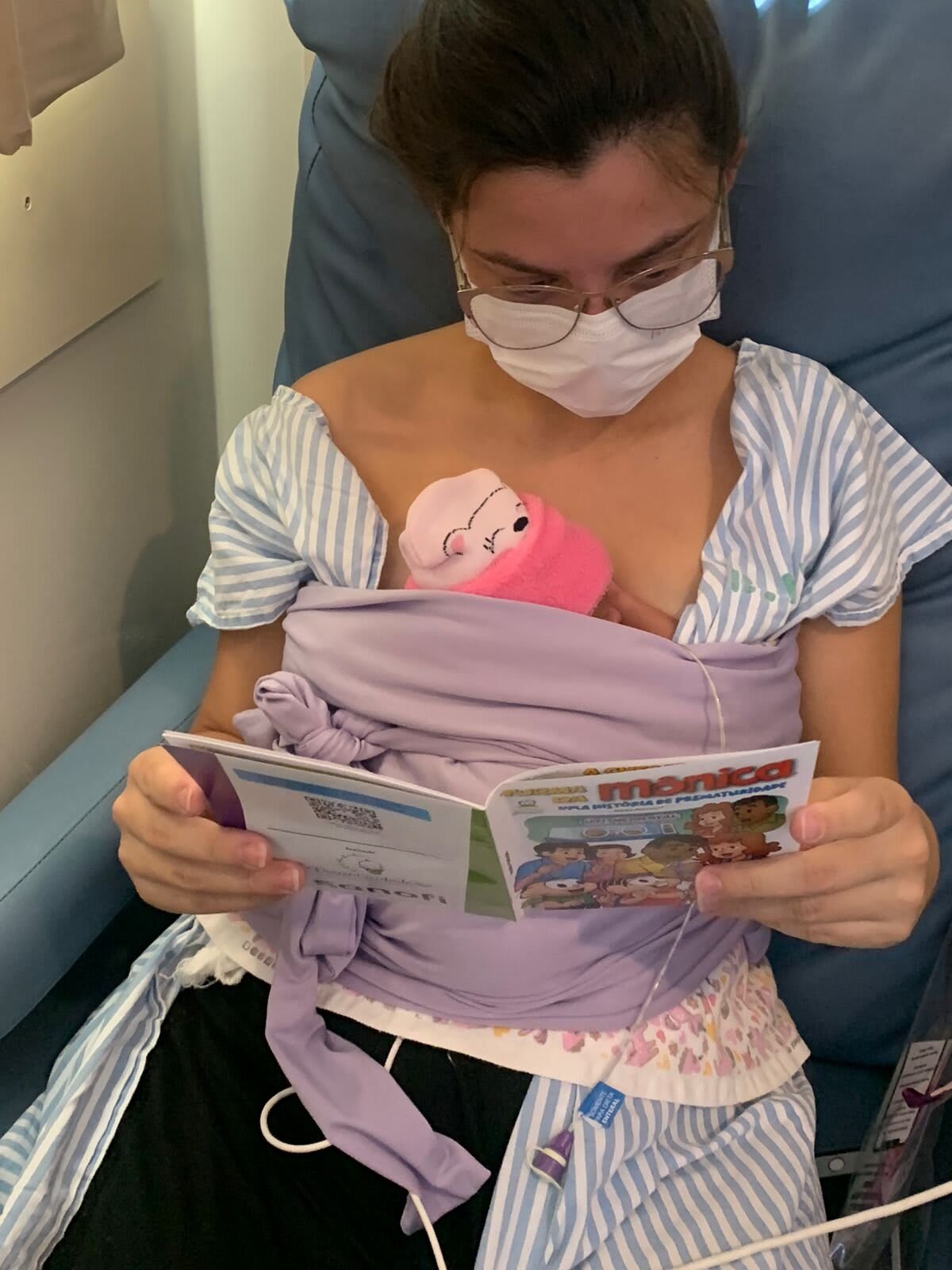 "Receber o Gibi da Prematuridade reativou memórias e me emocionou. Na infância, eu adorava ler histórias em quadrinhos, especialmente as da Turma da Mônica, e o primeiro livro do Rômulo foi/será o gibi que retrata um pouco da vida prematura dos nossos pequenos, com uma pitada de humor e a sensibilidade ímpar do nosso querido Maurício de Sousa, que tenta contextualizar de forma lúdica as nossas adversidades. O gibi está guardado na caixa do 'meu 1° tudo' e, futuramente, fará parte da alfabetização do gigante, assim como minha mãe fez comigo ao lermos juntas os quadrinhos." - Veridiana, mãe do prematuro extremo Rômulo (26 semanas)."