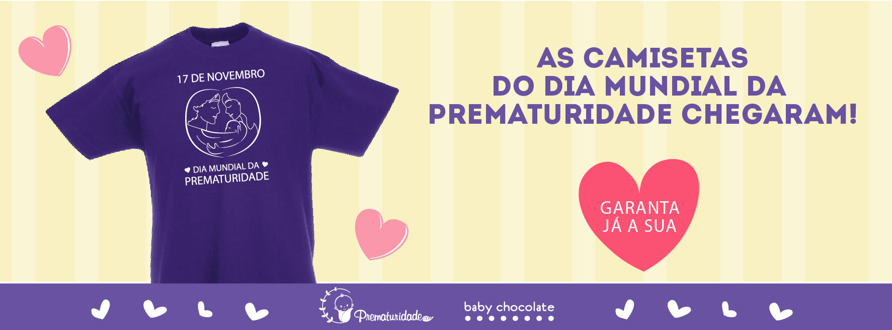 As camisetas produzidas pela ONG contam com novo layout e já estão à venda: compre aqui o body, compre aqui tamanho infantile compre aqui tamanho adulto. Você pode adquirir as camisetas na loja virtual da Baby Chocolate e também na loja física, localizada na Galeria Casa Prado (Rua Dinarte Ribeiro, 148 loja 2), em Porto Alegre (RS). O valor arrecadado com a venda das camisetas é revertido para a ONG Prematuridade.com. Agradecemos, mais uma vez, a parceria da Baby Chocolate! O frete para compra online varia conforme a região em preço fixo pelos correios.