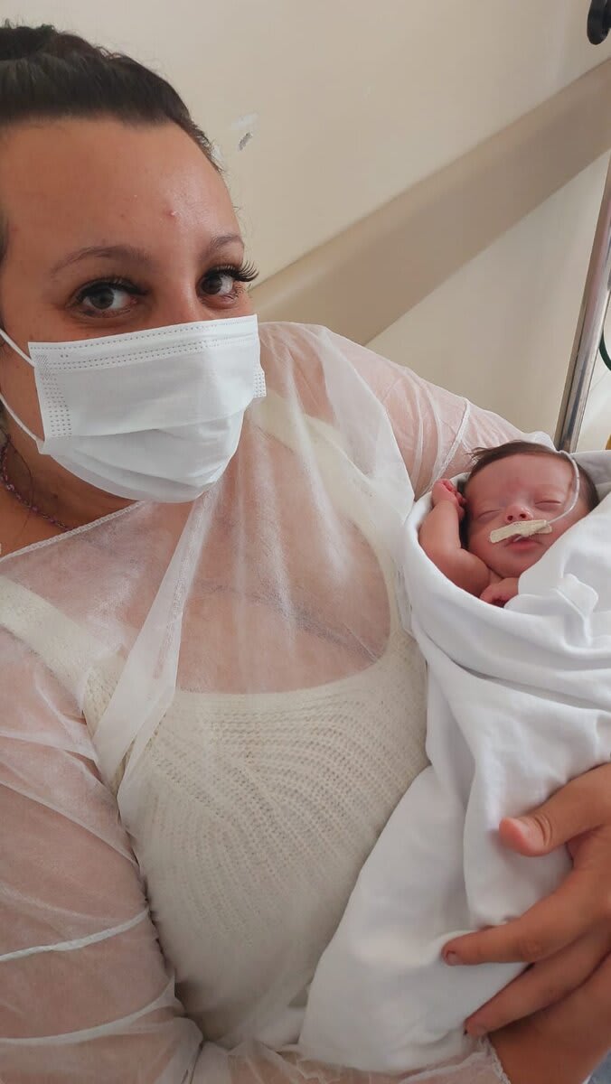 Meu nome é Giovana, minha filha se chama Valentina Antonella e tive meu parto prematuro em outubro de 2022. Até o 5º mês de gravidez estava tudo bem e quando fui para o 6º mês senti que eu estava toda molhada, descobri uma infecção urinária no acompanhamento no médico e comecei a tratar. No dia seguinte fui fazer alguns exames e estava tudo bem, quando foi na noite do dia 04/10/2022 saiu o tampão com 24 semanas e fui correndo pro hospital. A única coisa que a doutora falou pra mim é que estava tudo bem, mas eu teria que ficar internada porque eu estava dilatando... me assustei pois era a primeira filha. Teria que ficar em repouso absoluto pois já estava com 6 dedos de dilatação. Foi quase 1 mês pra segurar a bebê, quando eu completei 27 semanas começou a dar muita febre de 39 graus e se piorasse logicamente teria que induzir meu parto. Foi o que aconteceu e a Valentina nasceu com 920 gramas e 34 centímetros, não foi fácil, tive muito medo e achava que nada ia dar certo.