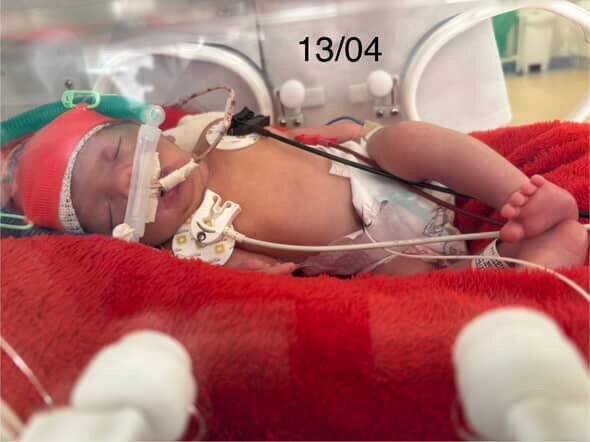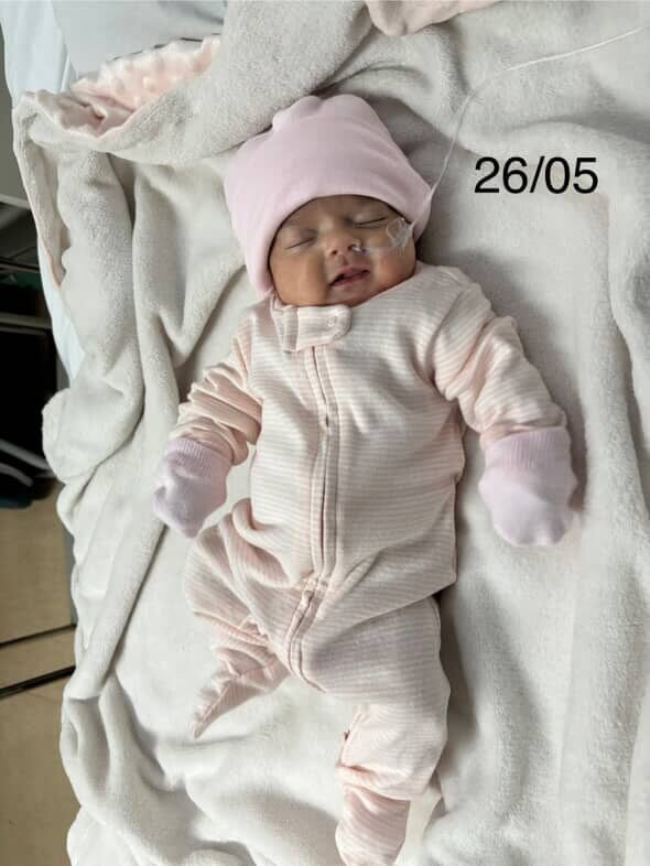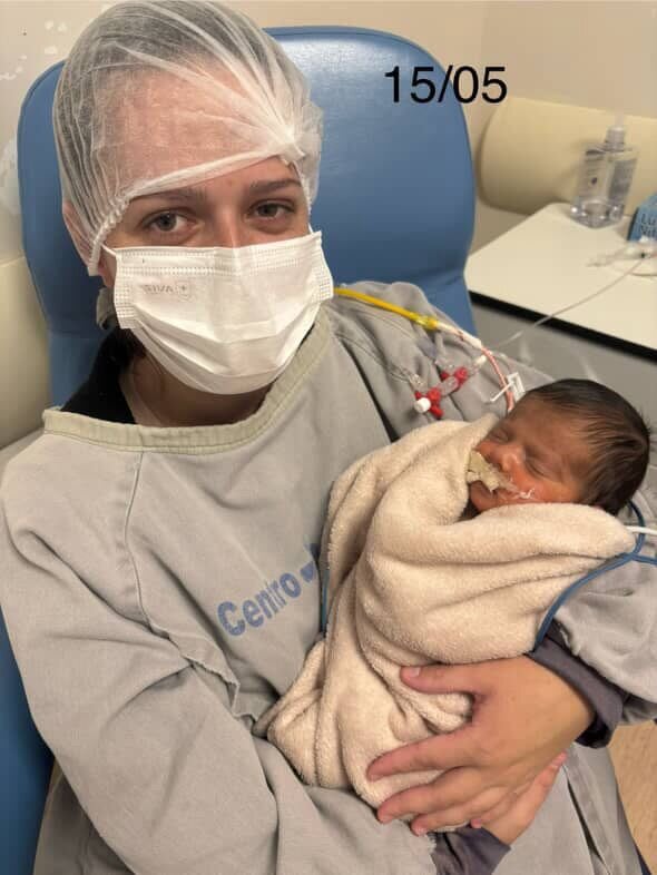 Em 12/04/25, Catarina nasceu às 2:00 da manhã, perfeita, de 32 semanas, com 1890g e 41 cm. Ninguém soube explicar o que aconteceu, o que foi visto, já que temos vídeos do intestino para fora do abdômen, laudos, e foi confirmado por três médicos diferentes.