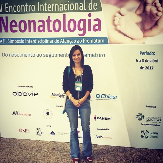 Ao final desse primeiro dia, a equipe do ambulatório de prematuros do HCPA, composta por uma pediatra neonatologista, uma nutricionista, uma fonoaudióloga, uma fisioterapeuta e uma psicóloga, apresentaram um estudo de caso de uma prematurinha que nasceu de 27 semanas, para que fosse discutida a conduta terapêutica tomada pela equipe em uma parte do evento denominada "Manejo do prematuro no pós-alta". Após a fala de cada uma dessas profissionais, que ressaltaram a importância do entrosamento da equipe para o manejo destes bebês no follow up, a diretora da ONG Prematuridade.com, Denise Suguitani, complementou a apresentação falando em nome das famílias dos bebês prematuros. Ela apresentou a ONG, falando sobre os desafios da prematuridade no Brasil e reforçou o fato de que o sucesso do manejo do prematuro depende de um personagem essencial: a mãe e/ou pai do bebê, que devem ser acolhidos, devem participar da rotina do bebê para que se apropriem de seus filhos e devem receber orientação sobre os cuidados com os pequenos durante toda a internação dos seus filhos na UTI.