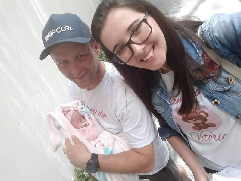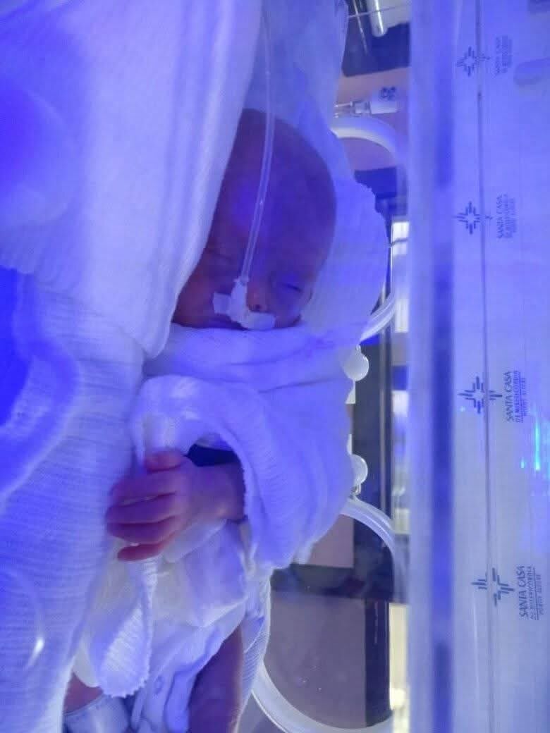Minha bebê nasceu de 28 semanas, pesando 482 gramas e medindo 27 centímetros. Ficou exatamente 6 meses na UTI neonatal, tendo uma parada cardíaca e algumas intercorrências! Ela nasceu prematura devido à trombofilia, que só descobrimos após o nascimento, com alguns exames feitos. Fez algumas cirurgias ao longo dos anos. Hoje, com 7 anos, esbanja alegria, carinho, saúde e é perfeita — o meu milagre mais lindo: minha Vitória Manoela.